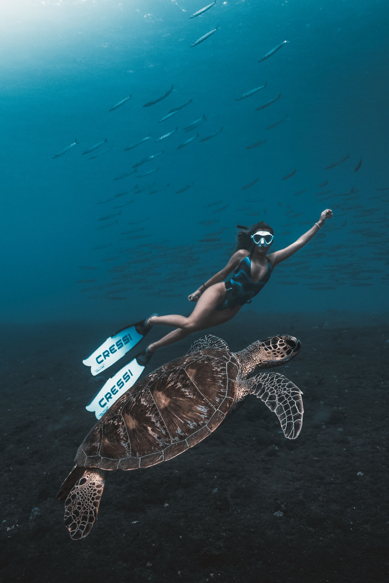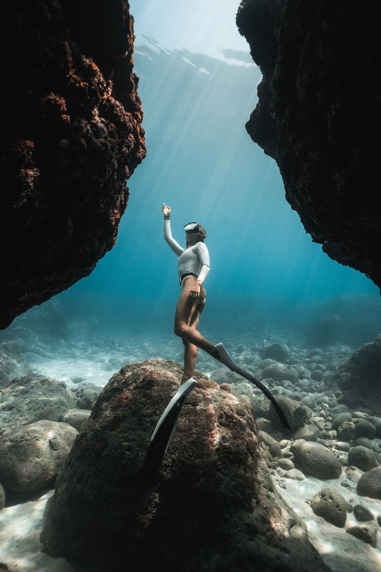 Aussi loin que je me souvienne, le monde aquatique m'a toujours fasciné. J'ai eu ce besoin viscéral de me connecter à la nature, explorer et découvrir de nouveaux environnements. La pratique de l'apnée en milieu naturel me permet d'évoluer dans un monde où je ressens pleinement mon statut d'explorateur. C'est un moment hors du temps, affranchi de la gravité terrestre, où je découvre une faune et une flore sauvage, colorée et curieuse d'interaction.