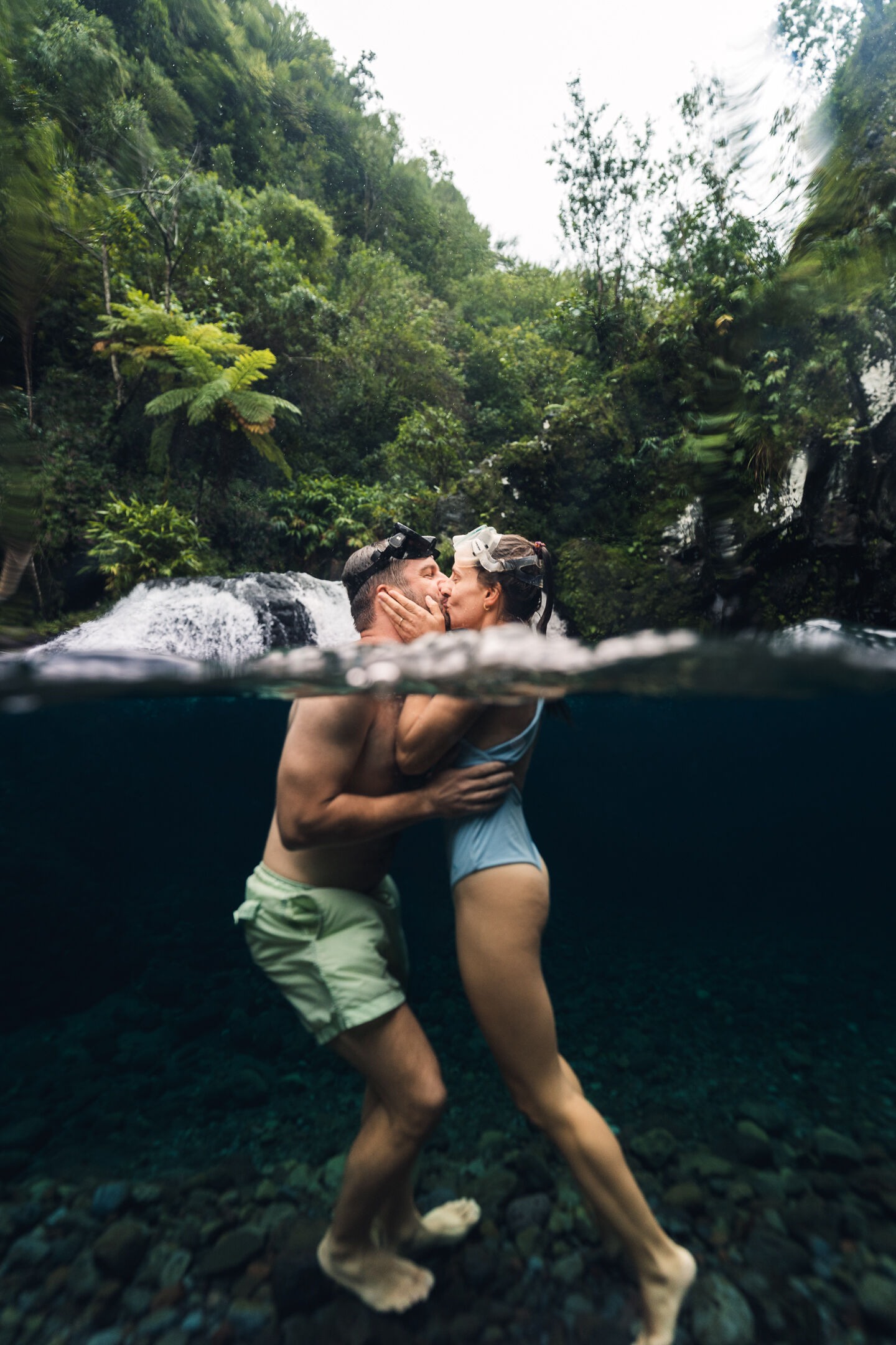 Nous déterminons ensemble le lieu du shooting : bassin d'eau douce, océan, formations basaltiques... Nous définissons les tenues et je vous explique tout le déroulement pour vous rassurer.